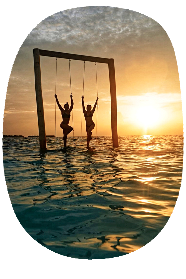 — Transfer Male - Kamadhoo - Male — Аccompanied by a manager — 2 persons in the room accommodation — Breakfast + Dinner — 12 workouts. Fitness + stretching — Evening program — Maldivian Night Show — Dolphin trip — Pole Dance dinner party on a desert island — Backstage photo and video shooting — Unlimited snorkeling — All taxes and fees